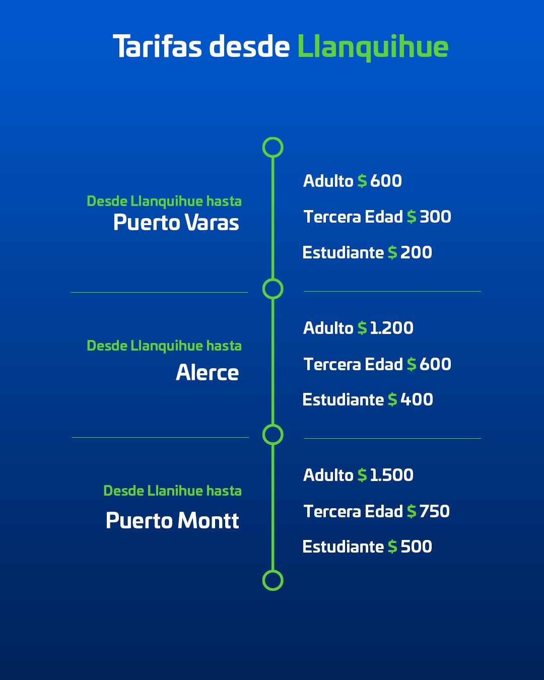 Esto, con las siguientes tarifas señaladas: